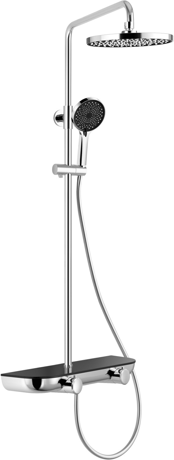 The shower faucet with a cosmetic shelf is a functional solution that combines ease of use with aesthetics. The shelf allows for the storage of cosmetics, soaps, shampoos, and other accessories at hand during a bath.