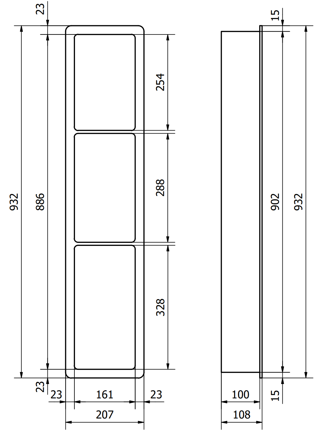 Width: 93.2 x 20.7 cm