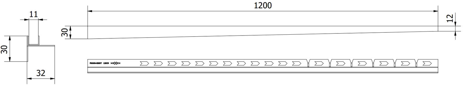 Mexen Line-B slope strip for glass 120 cm right, gold - 185004120R