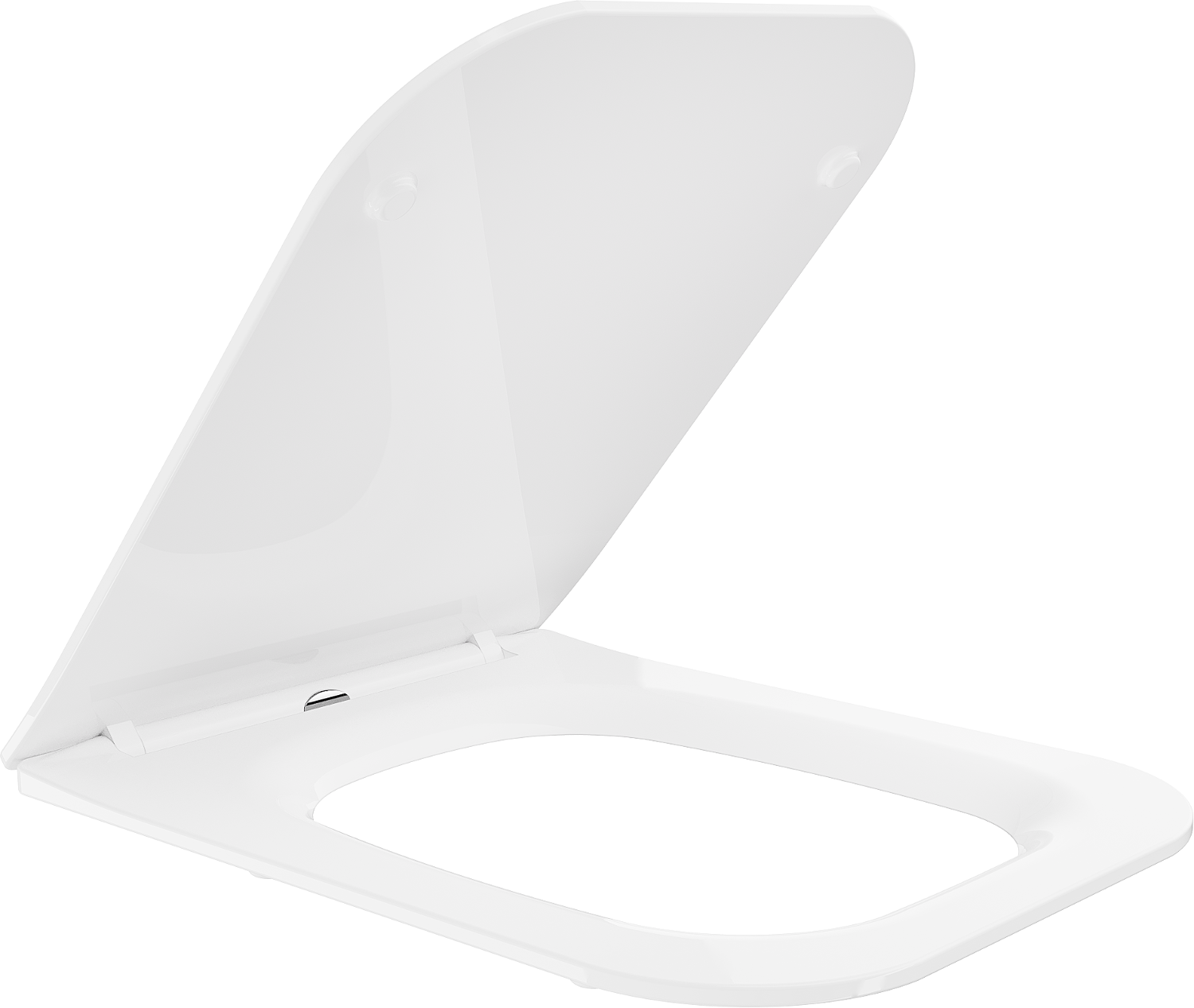 The set includes sturdy metal hinges that ensure stable mounting of the toilet seat to the bowl. This practical solution allows for easy adjustment of the seat to the shape and dimensions of the toilet, ensuring user comfort.