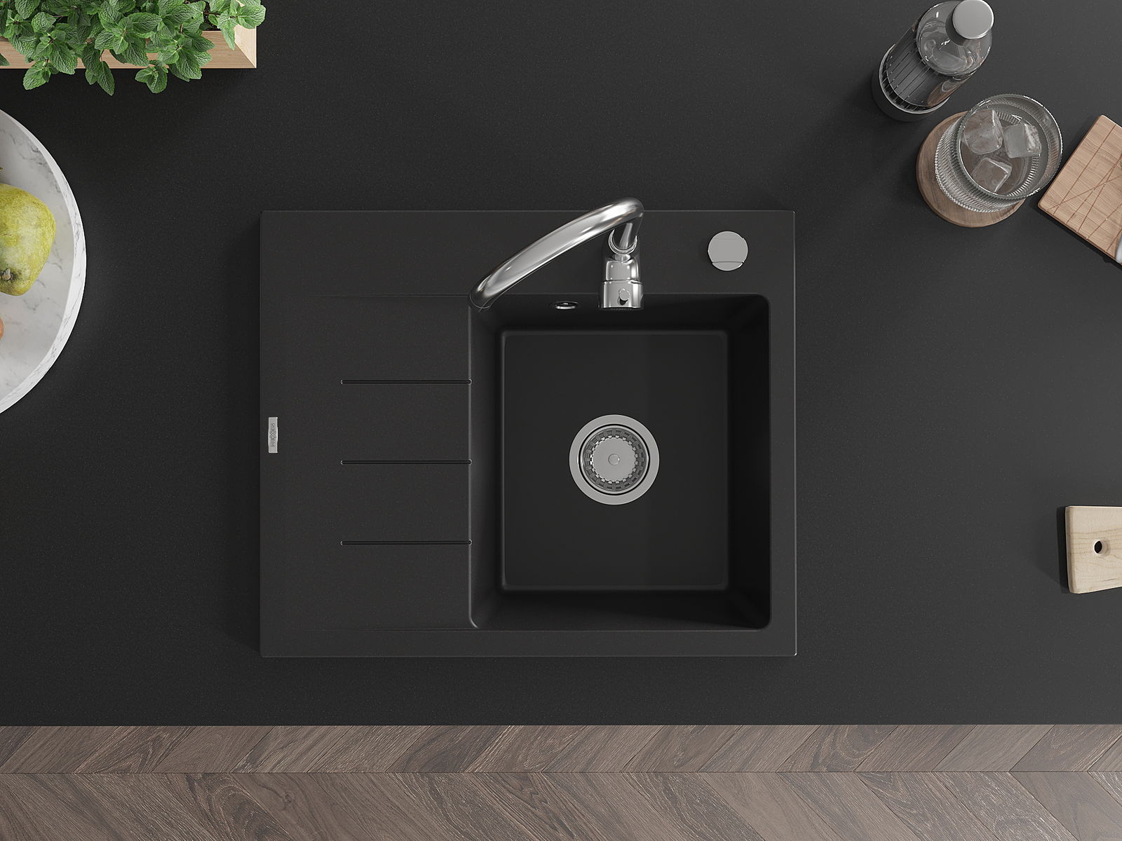 Choosing a sink with a draining board is a practical solution that allows you to set aside washed dishes or vegetables and fruits. The draining board makes daily cooking easier and helps maintain order in the kitchen.