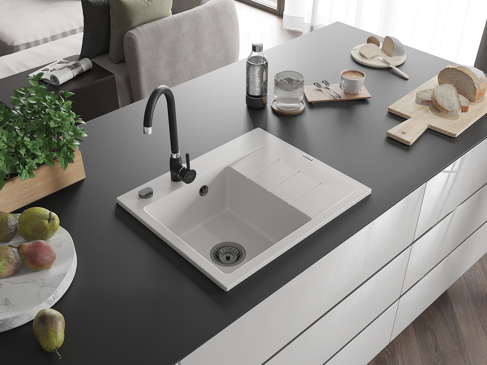 The surface of the sink is resistant to stains and discolouration, making it easy to maintain cleanliness and retain its colour for a long time of use. An aesthetic and practical addition to any kitchen.