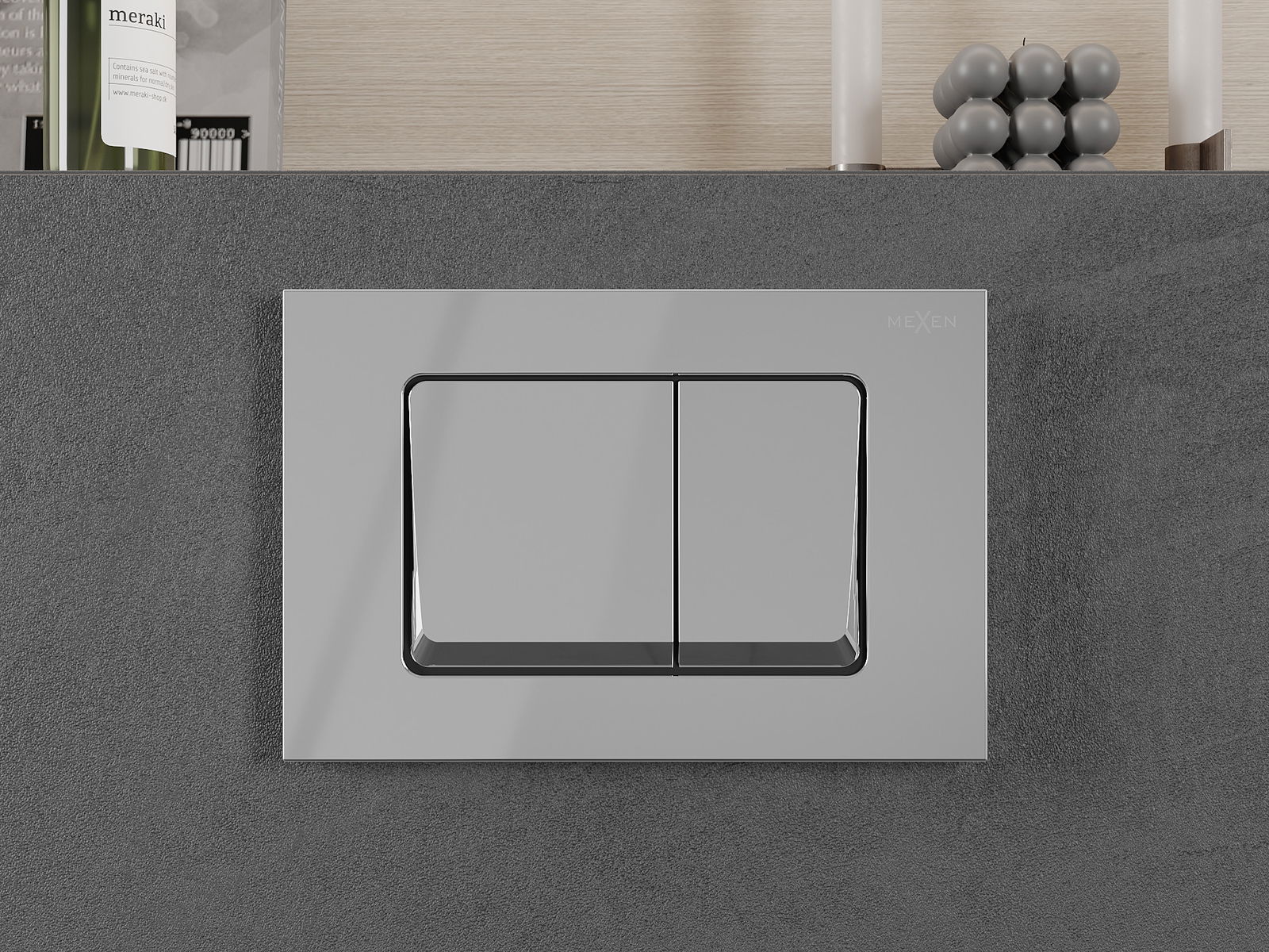 The button is designed for Mexen frames from the XS series. It can be installed both from the front and top of the frame, which increases its versatility. This solution facilitates installation in different mounting conditions. As a result, the flush operation is convenient and intuitive.