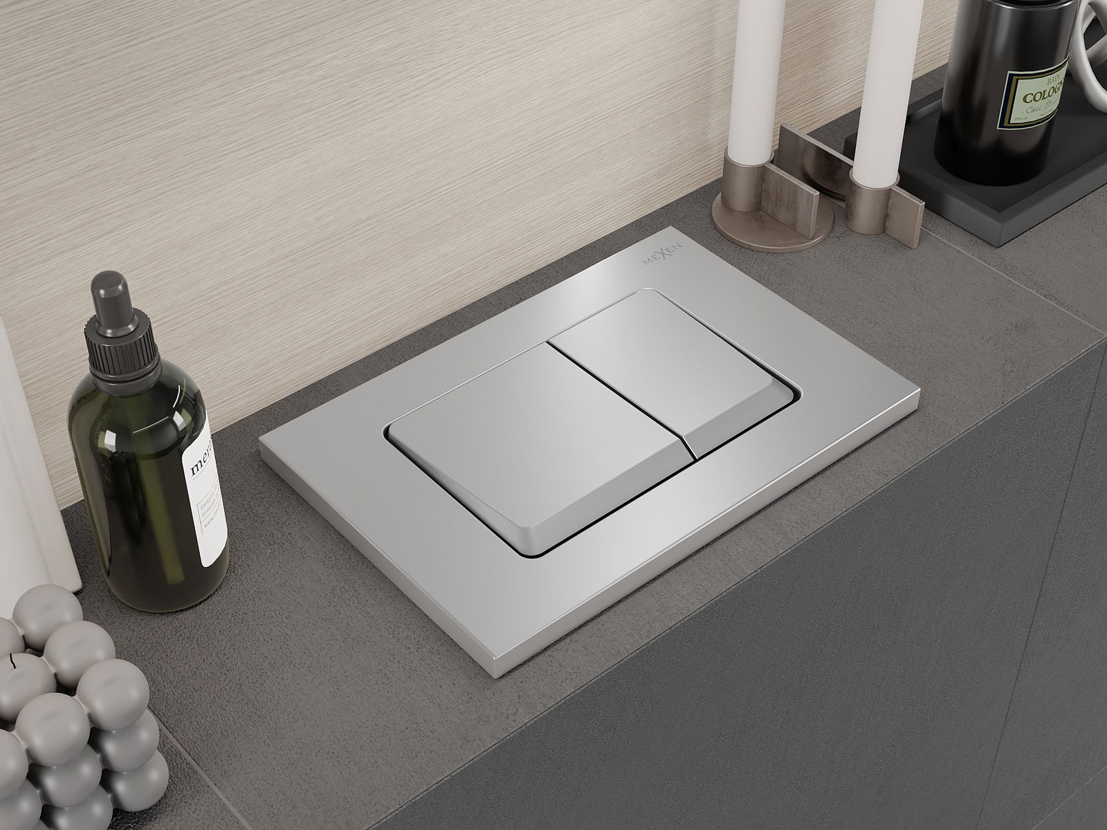 The button is designed for Mexen frames from the XS series. It can be installed both from the front and top of the frame, which increases its versatility. This solution facilitates installation in different mounting conditions. As a result, the flush operation is convenient and intuitive.