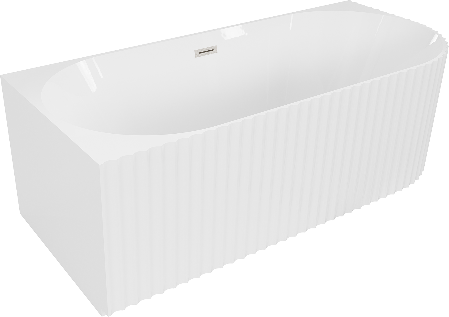 Mexen Gia 150 x 75 cm Free-Standing Corner Fluted Left Bathtub, White Gloss, Brushed Nickel Overflow - 52701507500L-97
