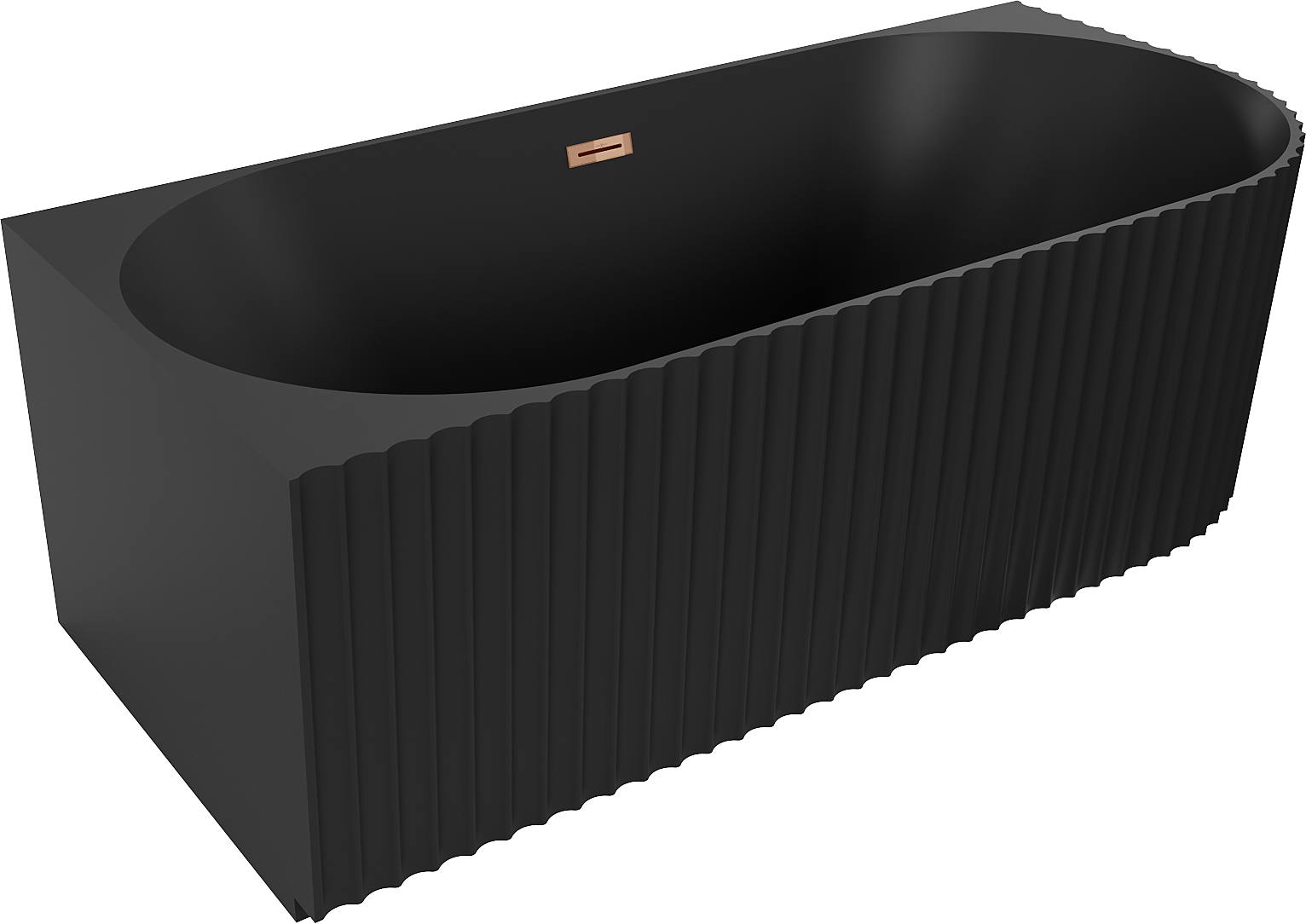 Mexen Gia freestanding corner fluted bathtub left 150 x 75 cm, black matte, overflow rose gold - 52701507571L-60