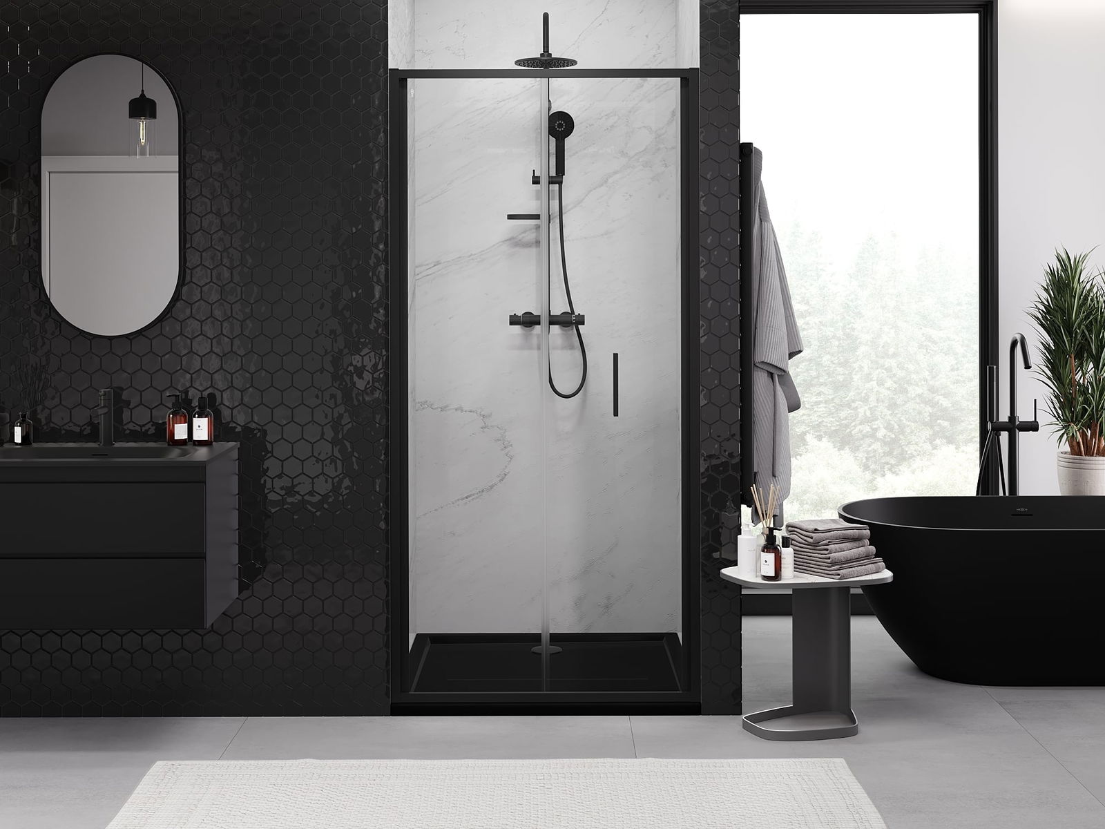 A handy and comfortable handle made from durable and resistant metal. Its trendy shape combined with a finish matched to the colour of the profiles gives the whole a modern and stylish look, highlighting the aesthetics of every bathroom.