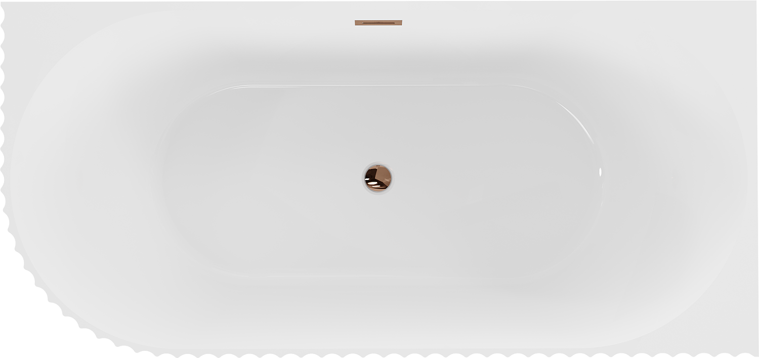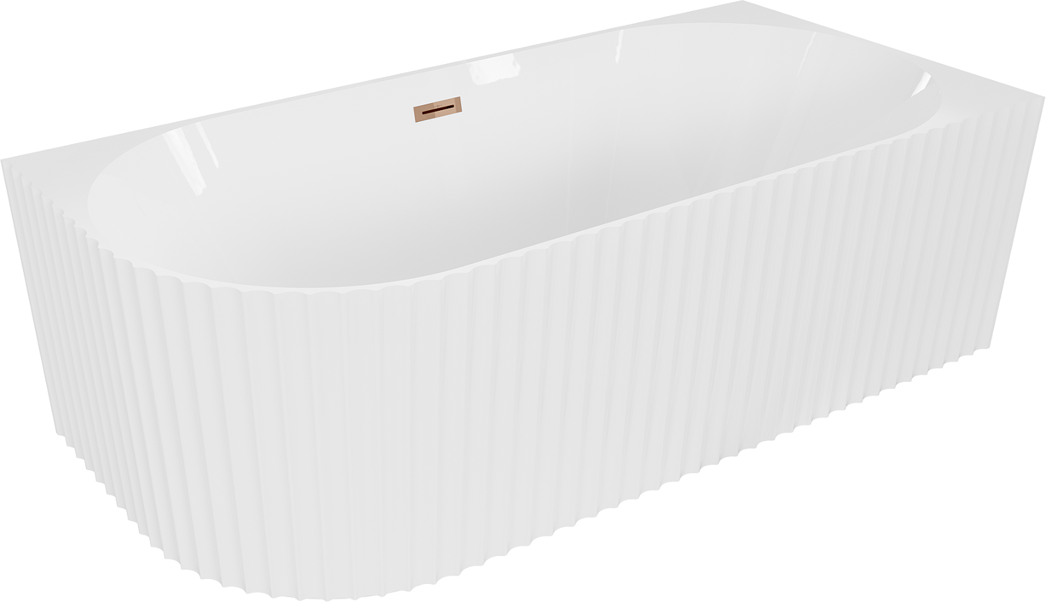 Mexen Gia freestanding corner fluted right bathtub 150 x 75 cm, white gloss, rose gold overflow - 52701507500P-60