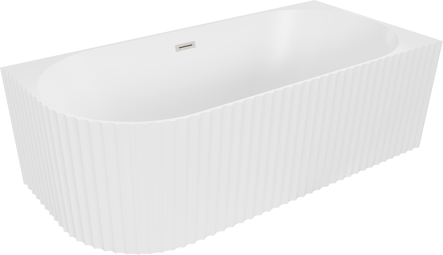 Mexen Gia freestanding corner fluted right bathtub 150 x 75 cm, white matte, brushed nickel overflow - 52701507501P-97