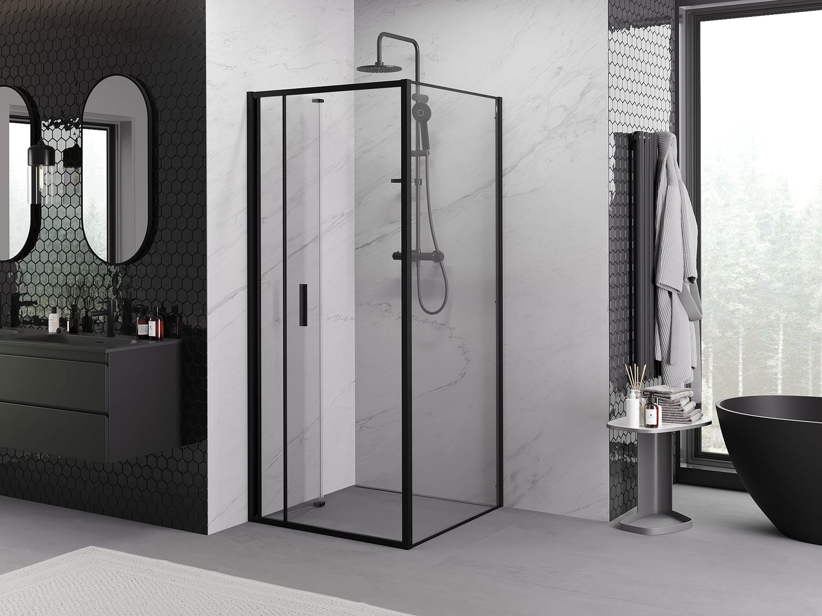 A handy and comfortable handle made from durable and resistant metal. Its trendy shape combined with a finish matched to the colour of the profiles gives the whole a modern and stylish look, highlighting the aesthetics of every bathroom.
