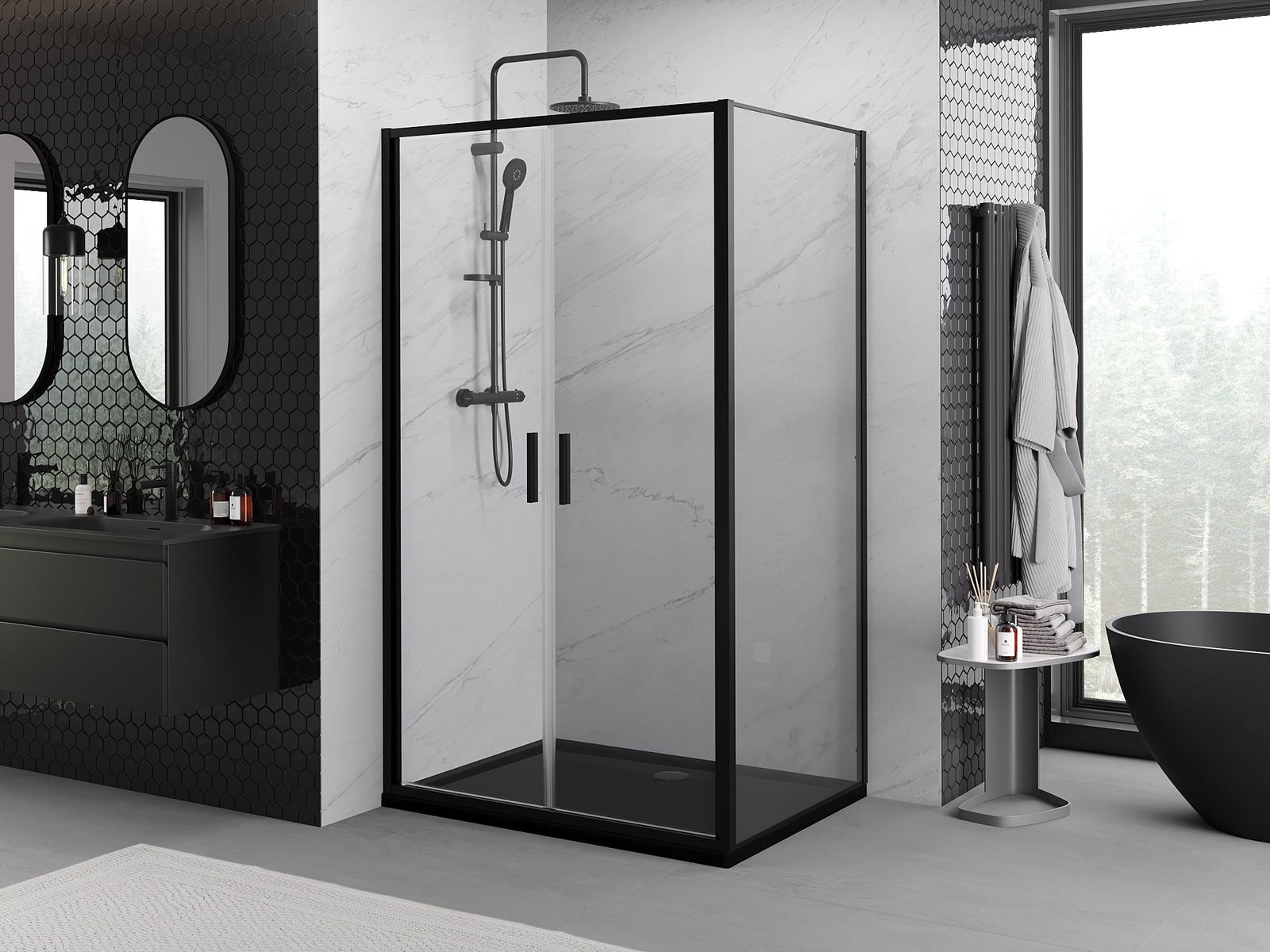 A handy and comfortable handle made from durable and resistant metal. Its trendy shape combined with a finish matched to the colour of the profiles gives the whole a modern and stylish look, highlighting the aesthetics of every bathroom.