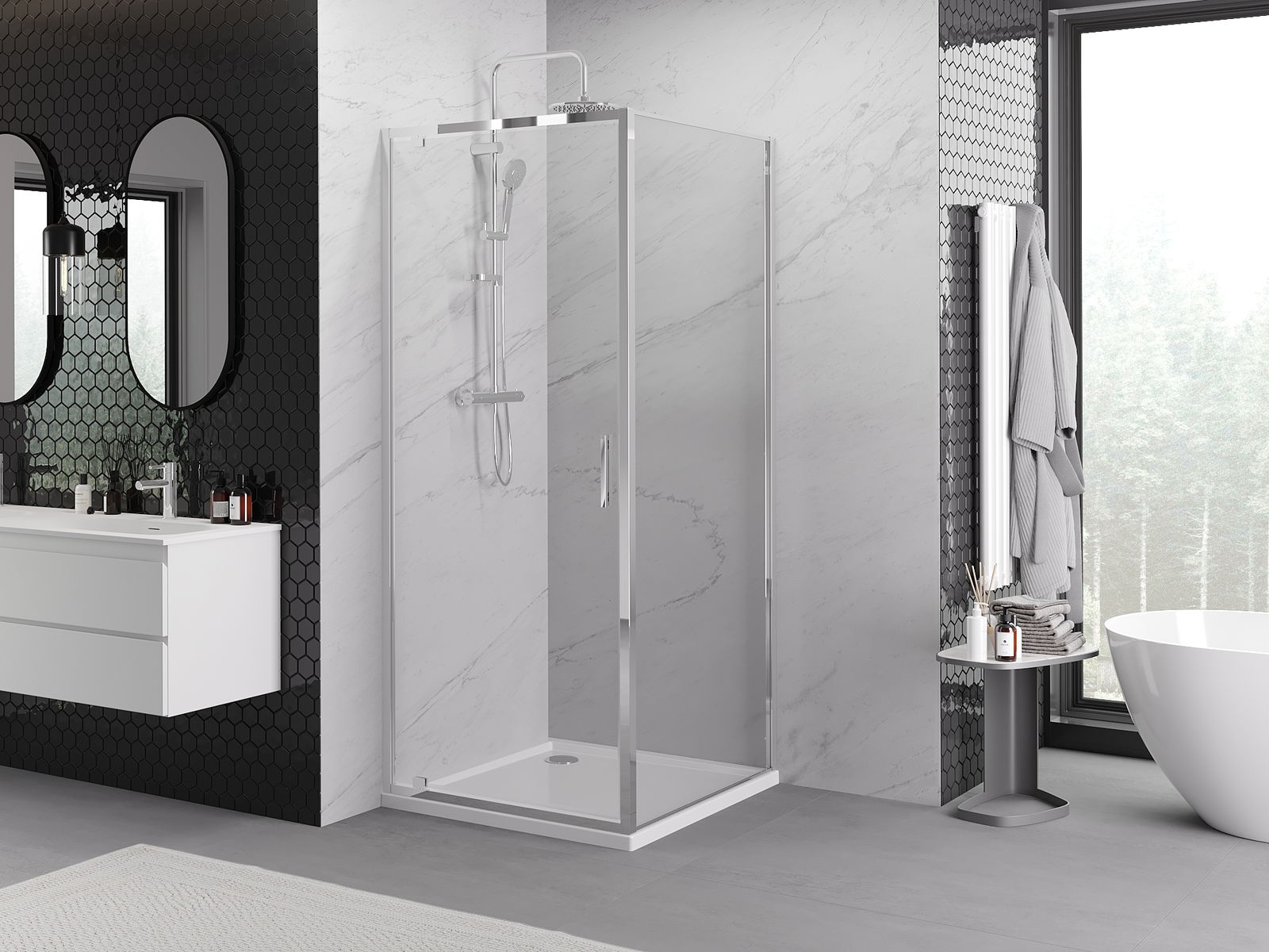 Thanks to the use of a universal mounting system, shower doors can be installed on the right or left side, depending on your needs. This allows you to easily design a shower tailored to the bathroom space.