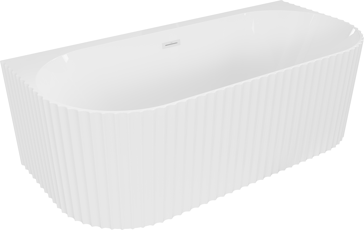 Mexen Sella freestanding ribbed back-to-wall bath 170 x 80 cm, glossy white, white overflow - 52711708000-20