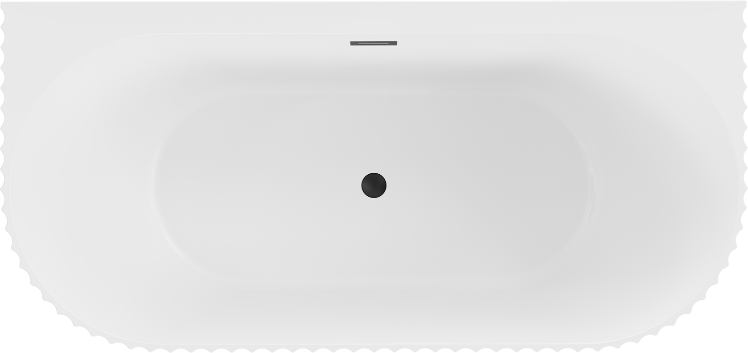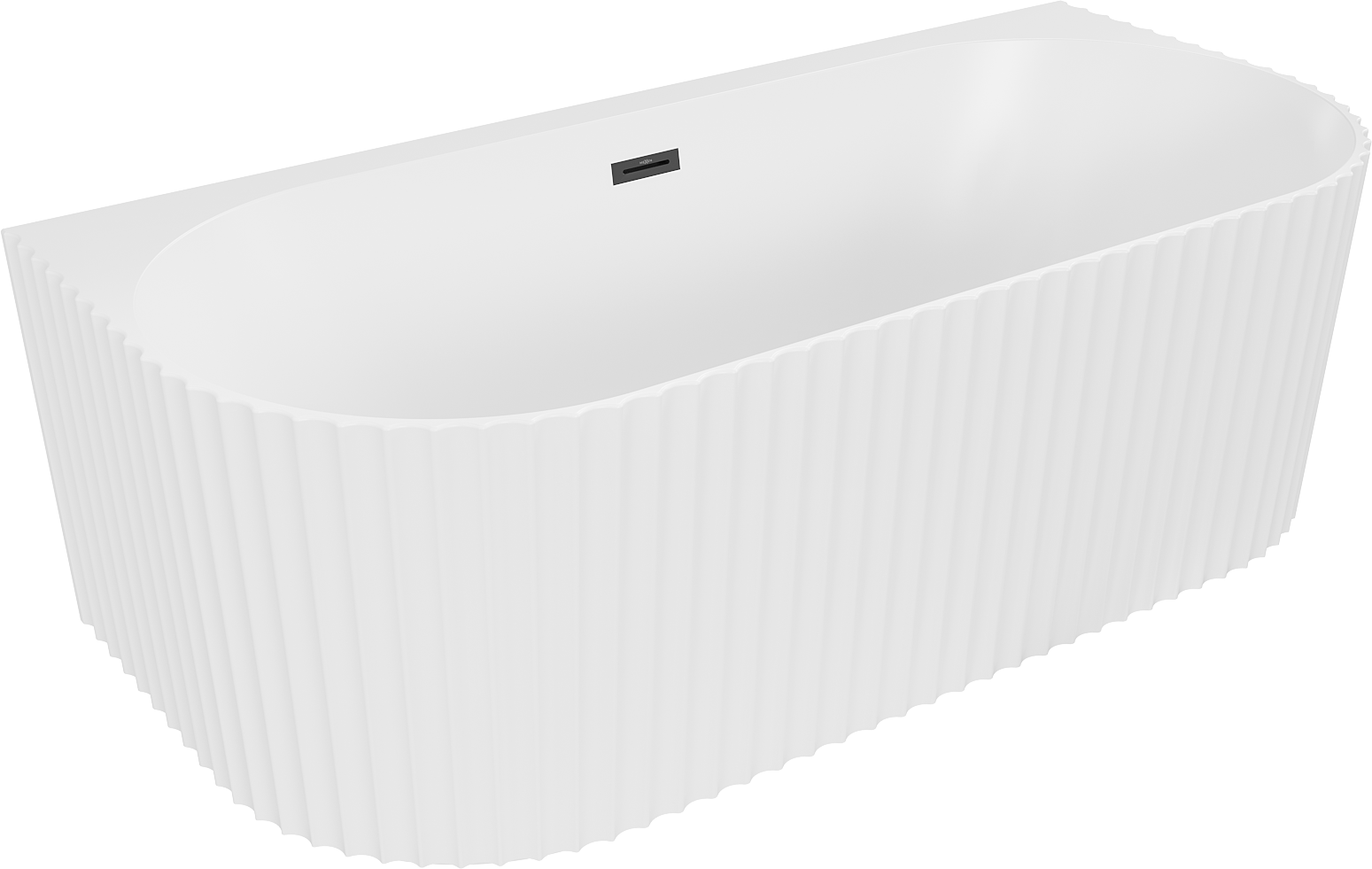 Mexen Sella 170 x 80 cm Freestanding Wall-Adjacent Grooved Bath, White Matte, Black Overflow - 52711708001-70