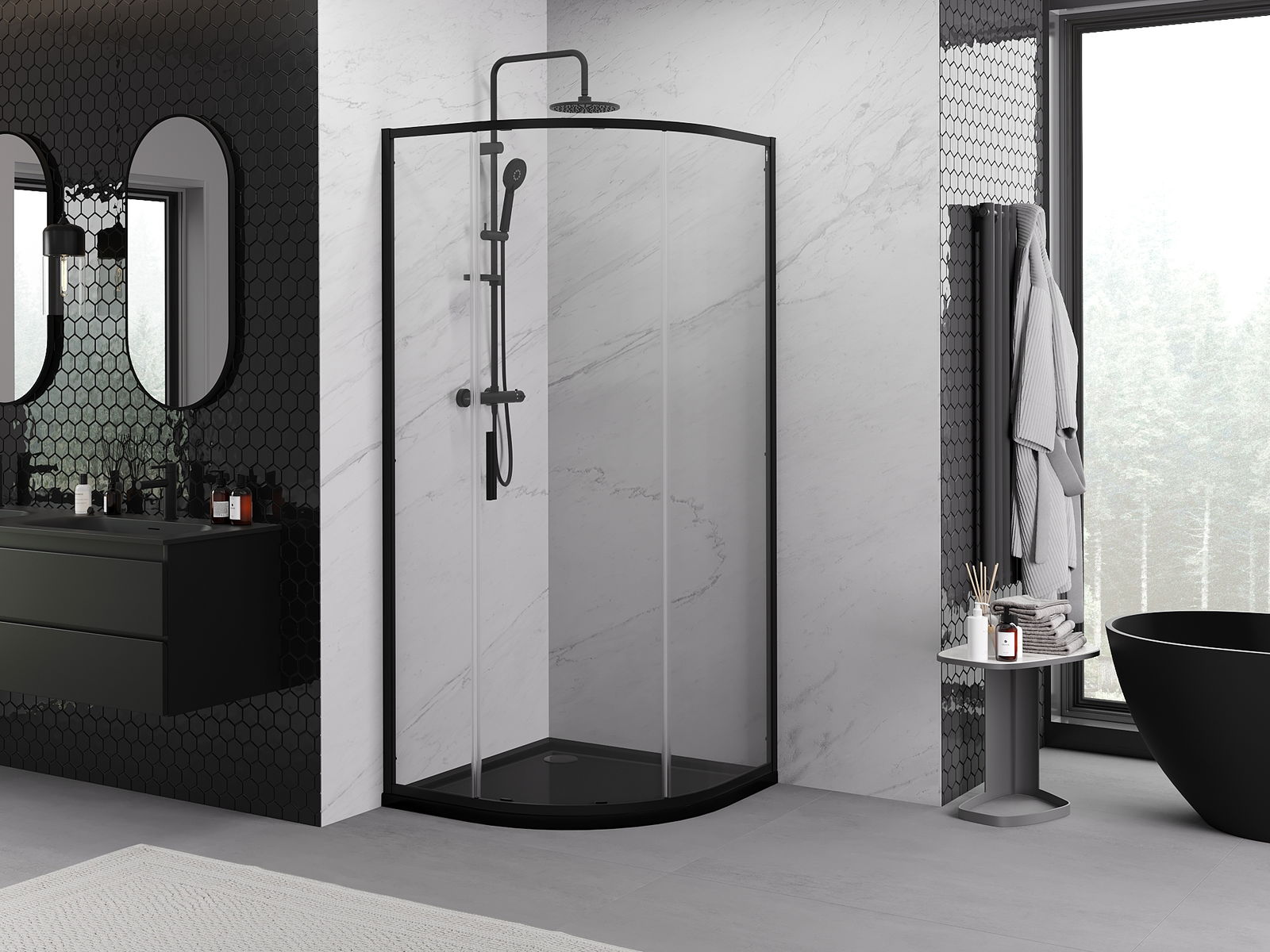 Mexen Exo semi-circular sliding shower cabin 80 x 80 cm, transparent, black - 8131-080-080-70-00