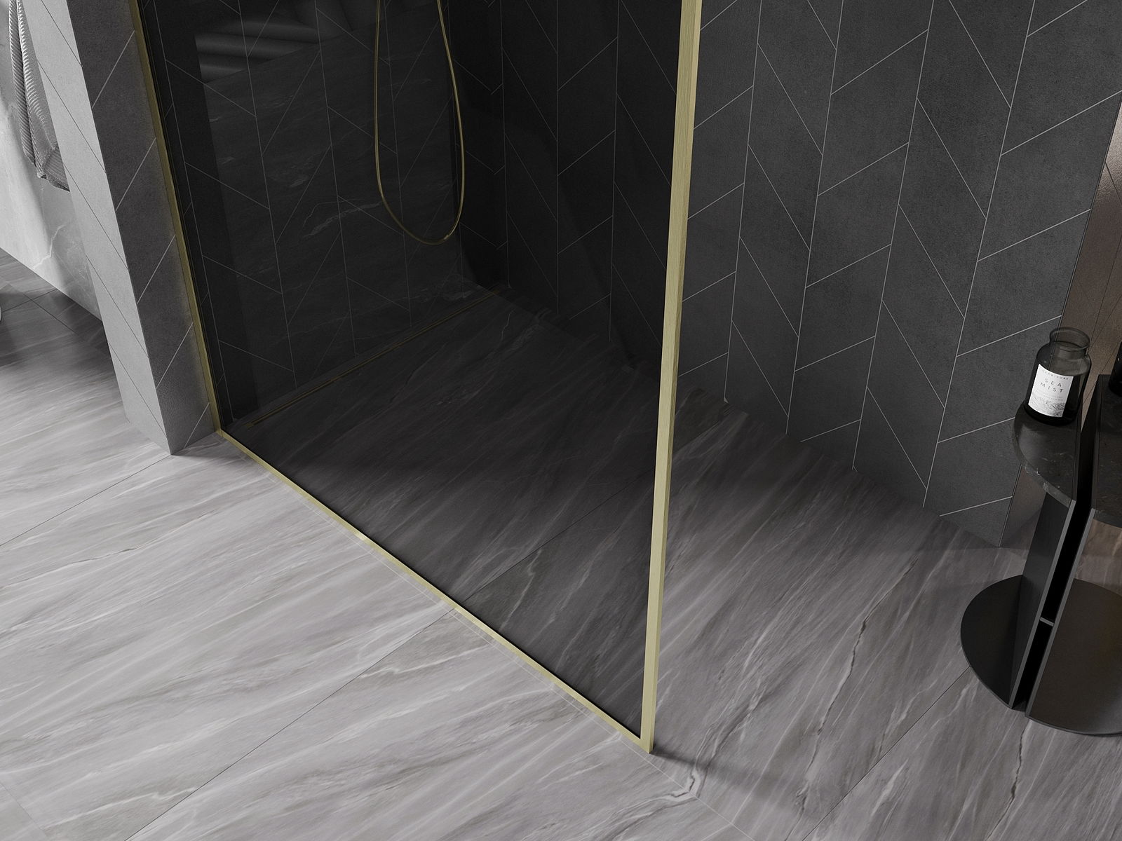 Mexen Kioto-F Walk-in Shower Wall with Frame 80 x 202 cm, Graphite 8 mm, Brushed Gold - 800-080-104-55-40