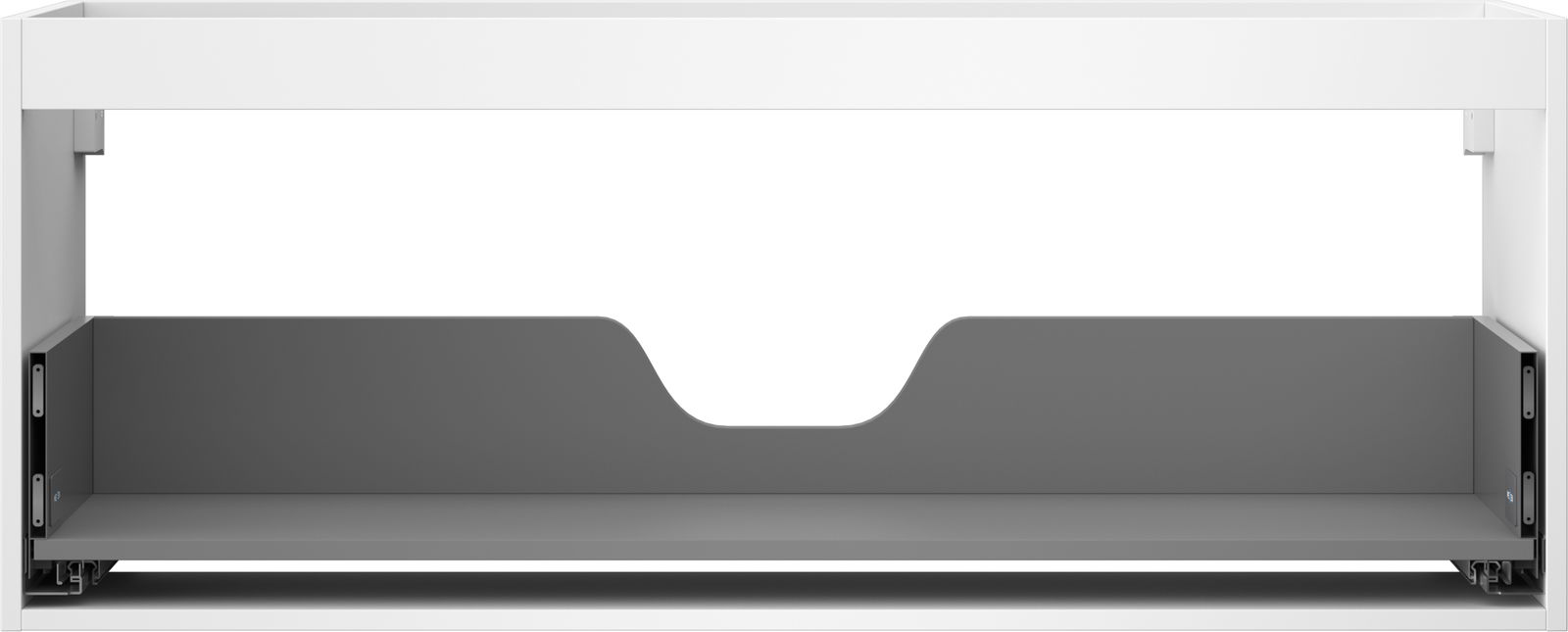 The cutout in the drawer is designed in such a way as to accommodate the siphon, which is essential in sink installations. This allows the furniture to be fully functional without having to give up drawer space for the installation.