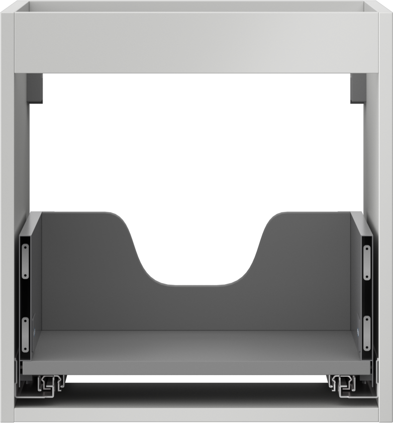 The cutout in the drawer is designed in such a way as to accommodate the siphon, which is essential in sink installations. This allows the furniture to be fully functional without having to give up drawer space for the installation.