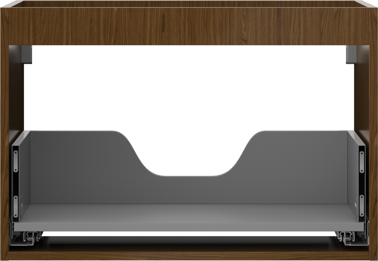The cutout in the drawer is designed in such a way as to accommodate the siphon, which is essential in sink installations. This allows the furniture to be fully functional without having to give up drawer space for the installation.