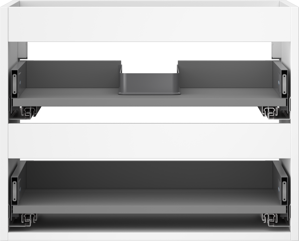 The cutout in the drawer is designed in such a way as to accommodate the siphon, which is essential in sink installations. This allows the furniture to be fully functional without having to give up drawer space for the installation.