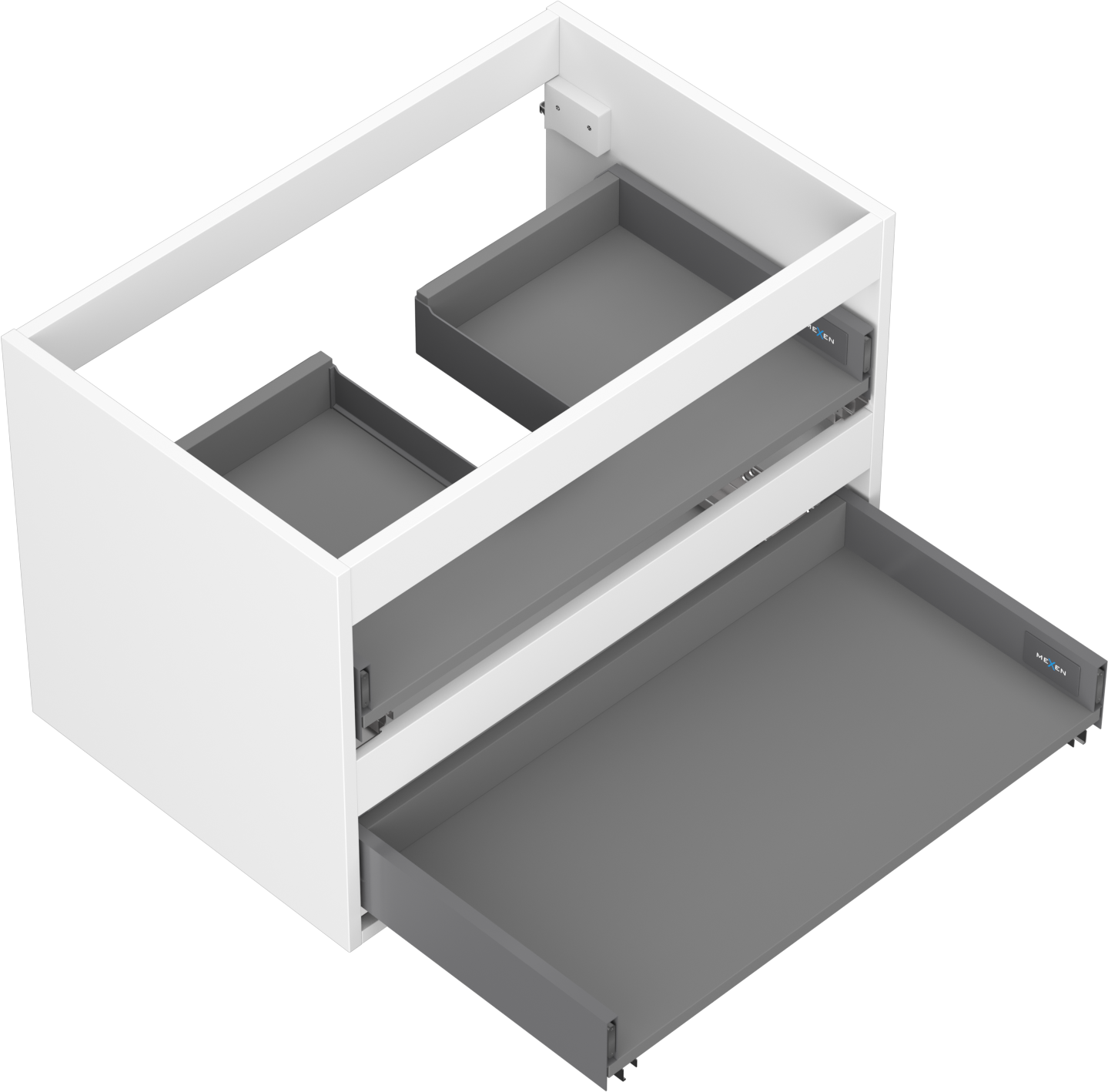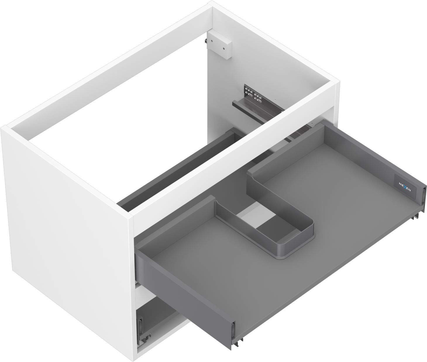 The cutout in the drawer is designed in such a way as to accommodate the siphon, which is essential in sink installations. This allows the furniture to be fully functional without having to give up drawer space for the installation.