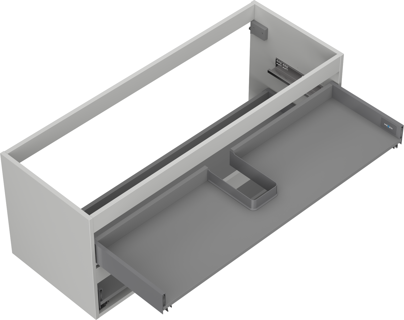 The cutout in the drawer is designed in such a way as to accommodate the siphon, which is essential in sink installations. This allows the furniture to be fully functional without having to give up drawer space for the installation.