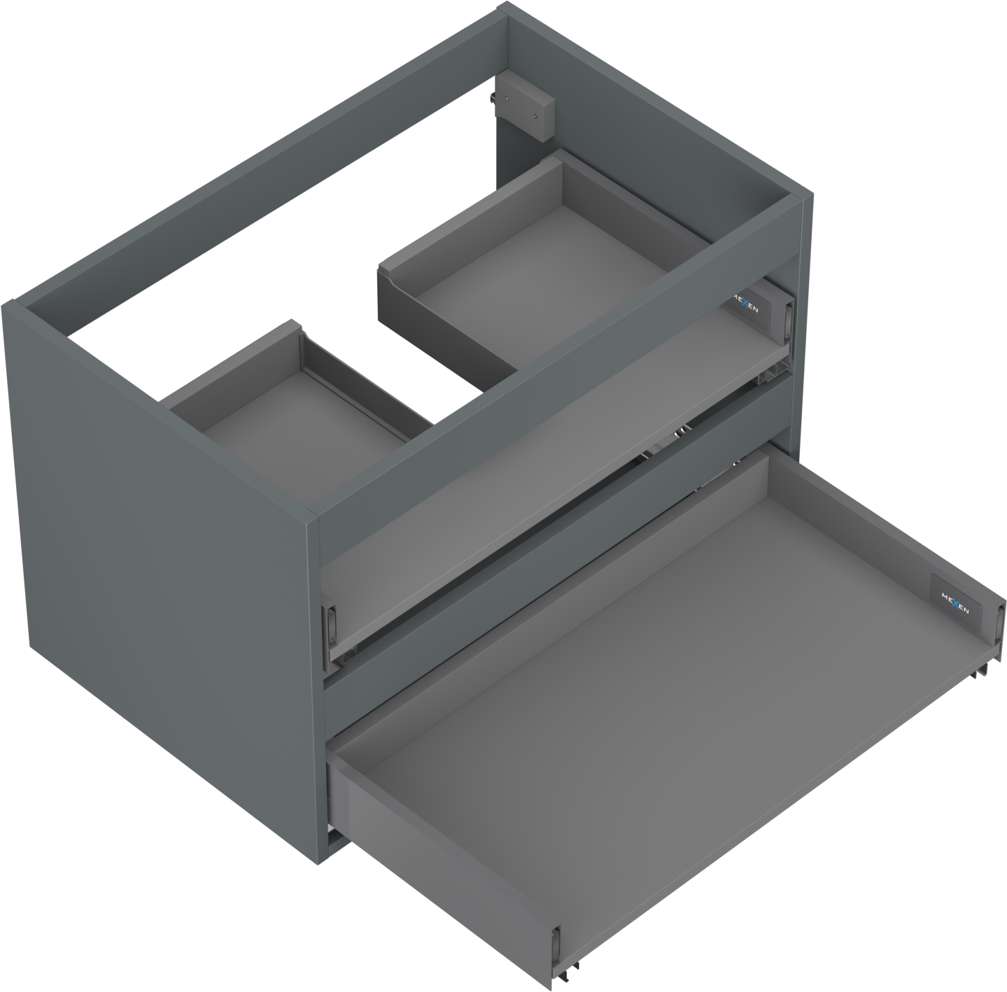 The cutout in the drawer is designed in such a way as to accommodate the siphon, which is essential in sink installations. This allows the furniture to be fully functional without having to give up drawer space for the installation.
