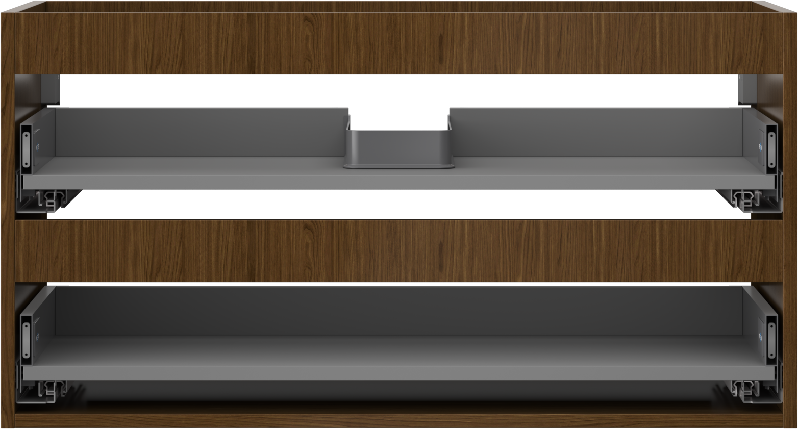 The cutout in the drawer is designed in such a way as to accommodate the siphon, which is essential in sink installations. This allows the furniture to be fully functional without having to give up drawer space for the installation.