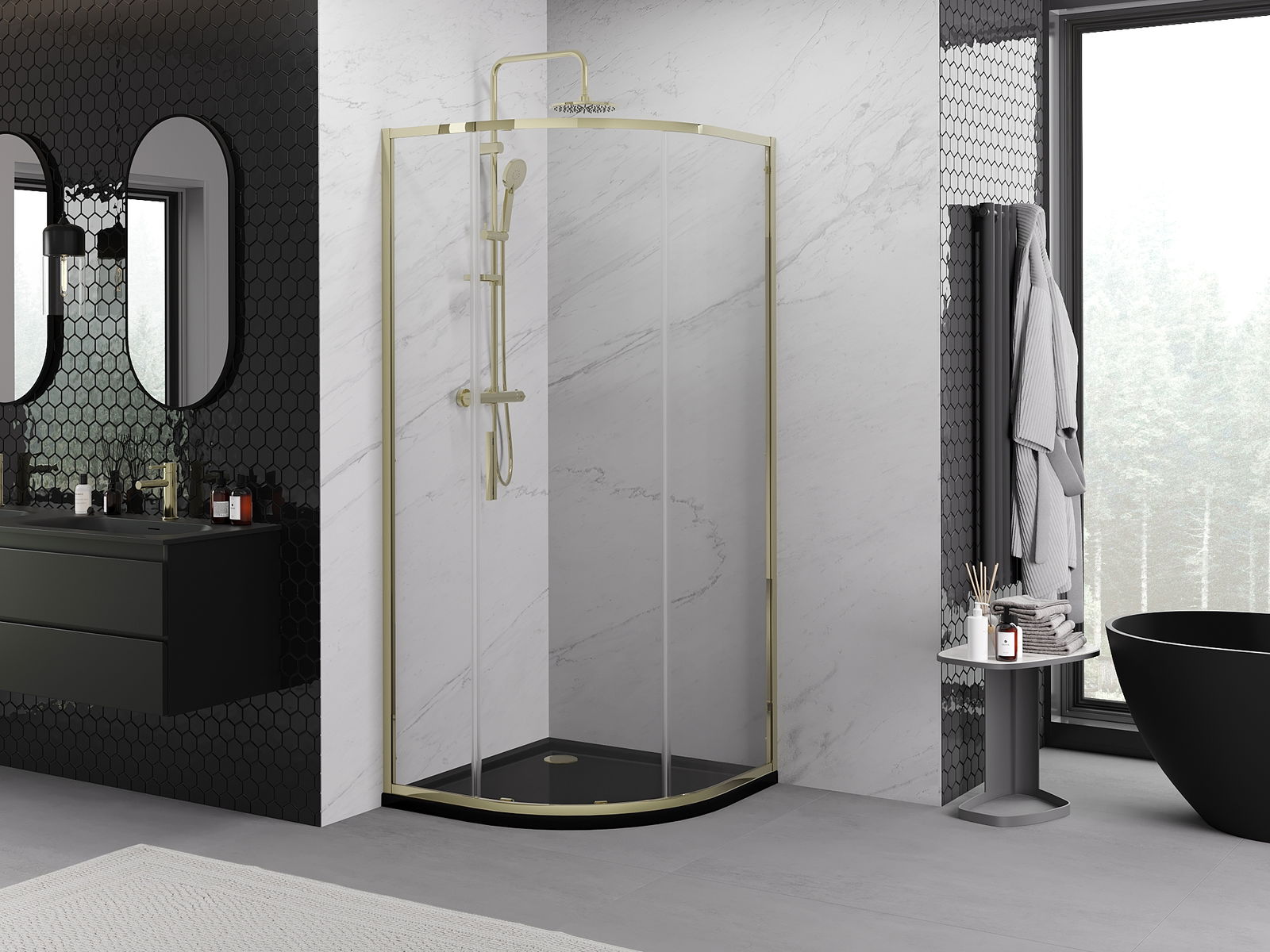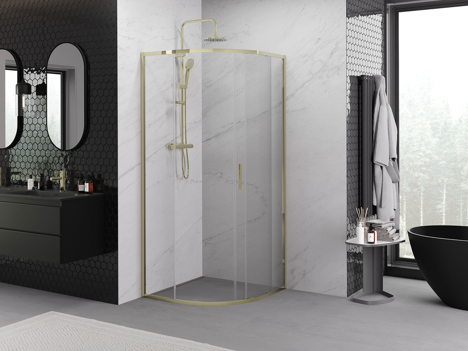 Sliding doors move along special guides and do not require additional space to open them, making them ideal for smaller bathrooms. Thanks to the double rollers with a metal body, their movement is smooth.