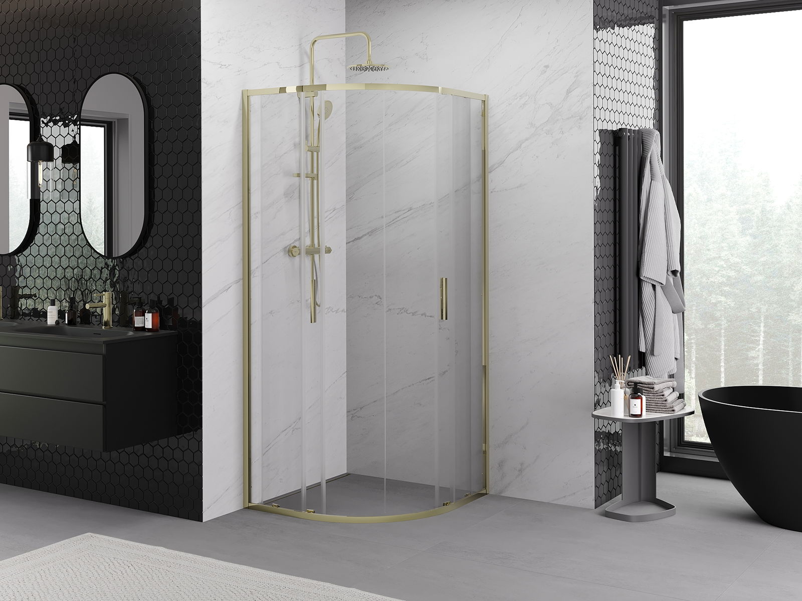 Sliding doors move along special guides and do not require additional space to open them, making them ideal for smaller bathrooms. Thanks to the double rollers with a metal body, their movement is smooth.