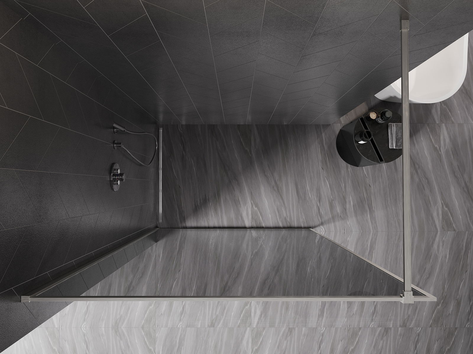 Mexen Kioto-XF Walk-in Shower Screen with Frame 100 x 202 cm, Graphite 10 mm, Brushed Nickel - 800-100-104-97-40-X