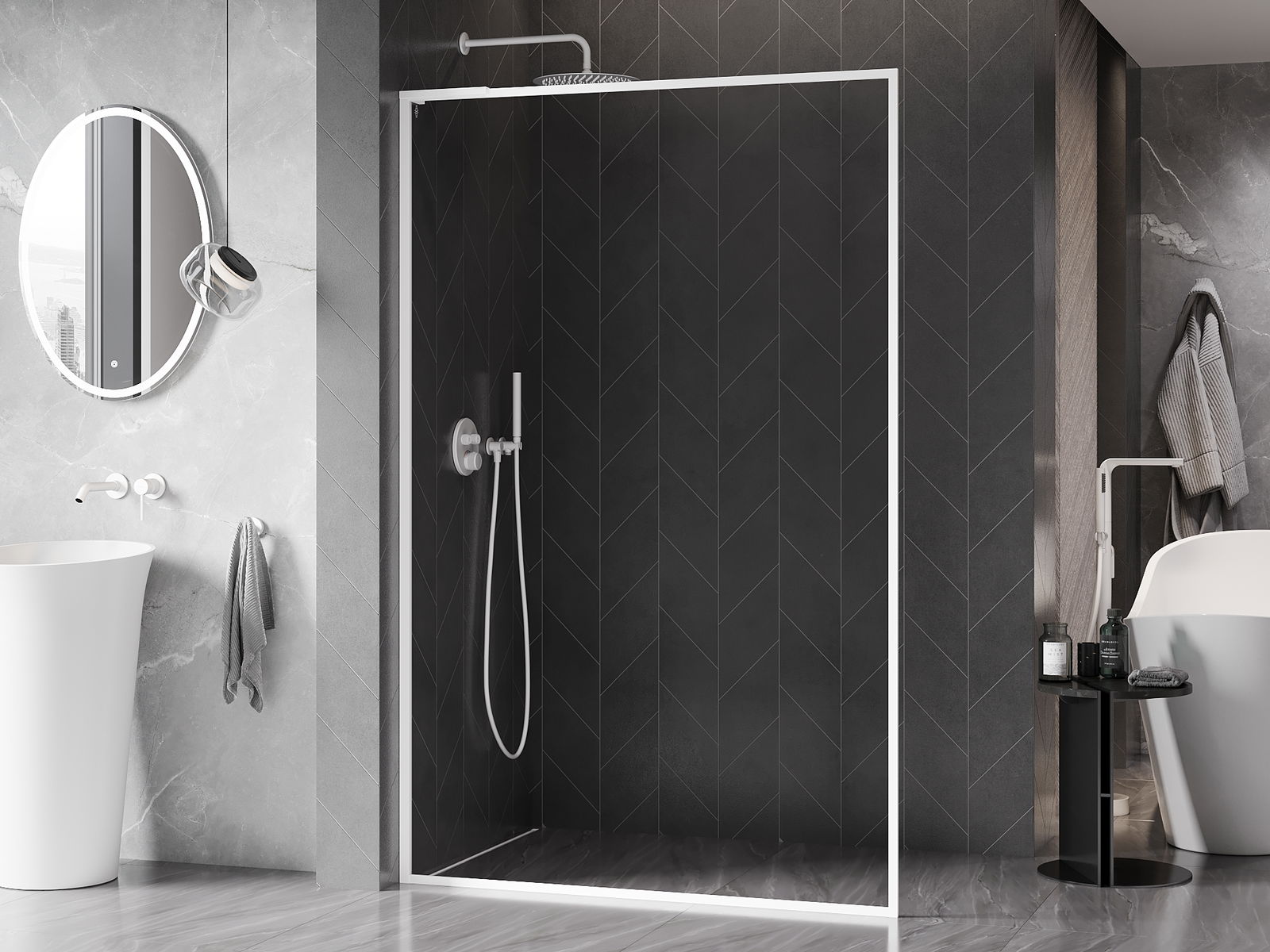 Thanks to the use of a universal mounting system, shower doors can be installed on the right or left side, depending on your needs. This allows you to easily design a shower tailored to the bathroom space.
