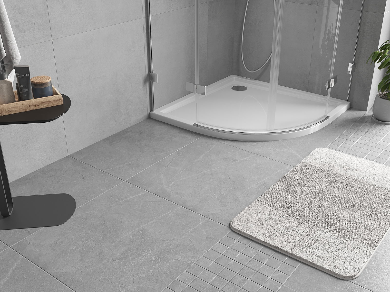 The shower tray is designed in such a way that water can freely flow towards the drain. It ensures quick and effective drainage of water from the surface of the shower tray, preventing the formation of puddles and flooding the bathroom.