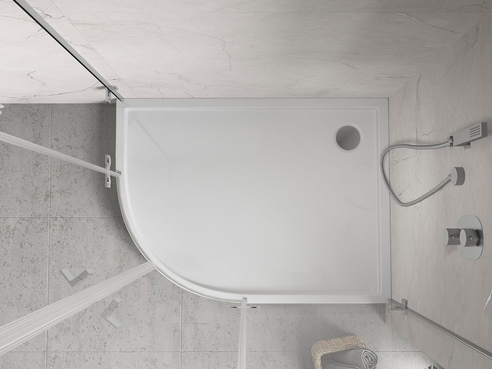 The shower tray is designed in such a way that water can freely flow towards the drain. It ensures quick and effective drainage of water from the surface of the shower tray, preventing the formation of puddles and flooding the bathroom.