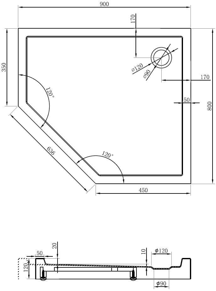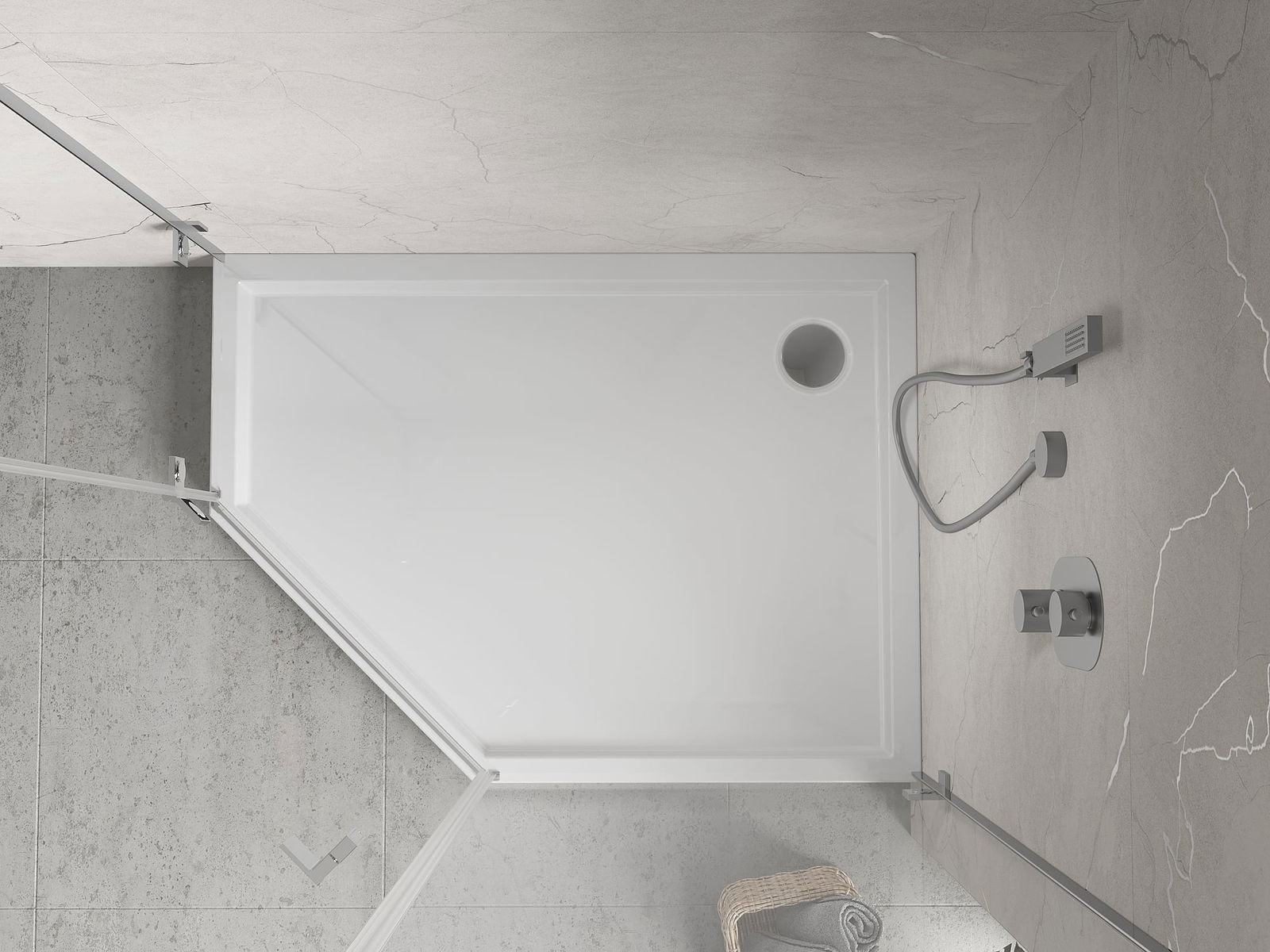 The shower tray is designed in such a way that water can freely flow towards the drain. It ensures quick and effective drainage of water from the surface of the shower tray, preventing the formation of puddles and flooding the bathroom.