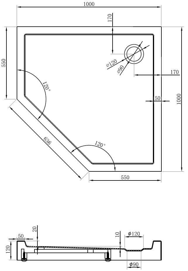 The shower tray is designed in such a way that water can freely flow towards the drain. It ensures quick and effective drainage of water from the surface of the shower tray, preventing the formation of puddles and flooding the bathroom.