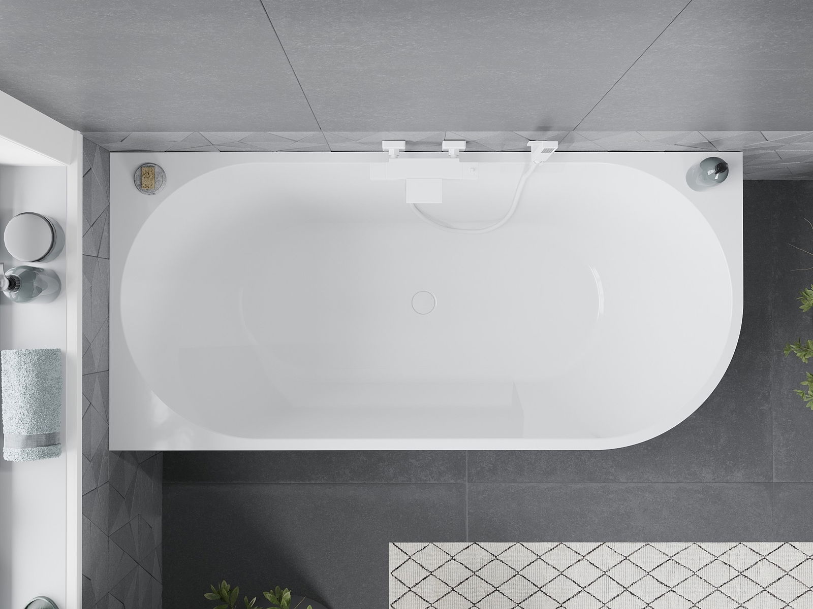 Mexen Mia freestanding corner bath left 140 x 75 cm, white, white overflow - 52691407500L-20