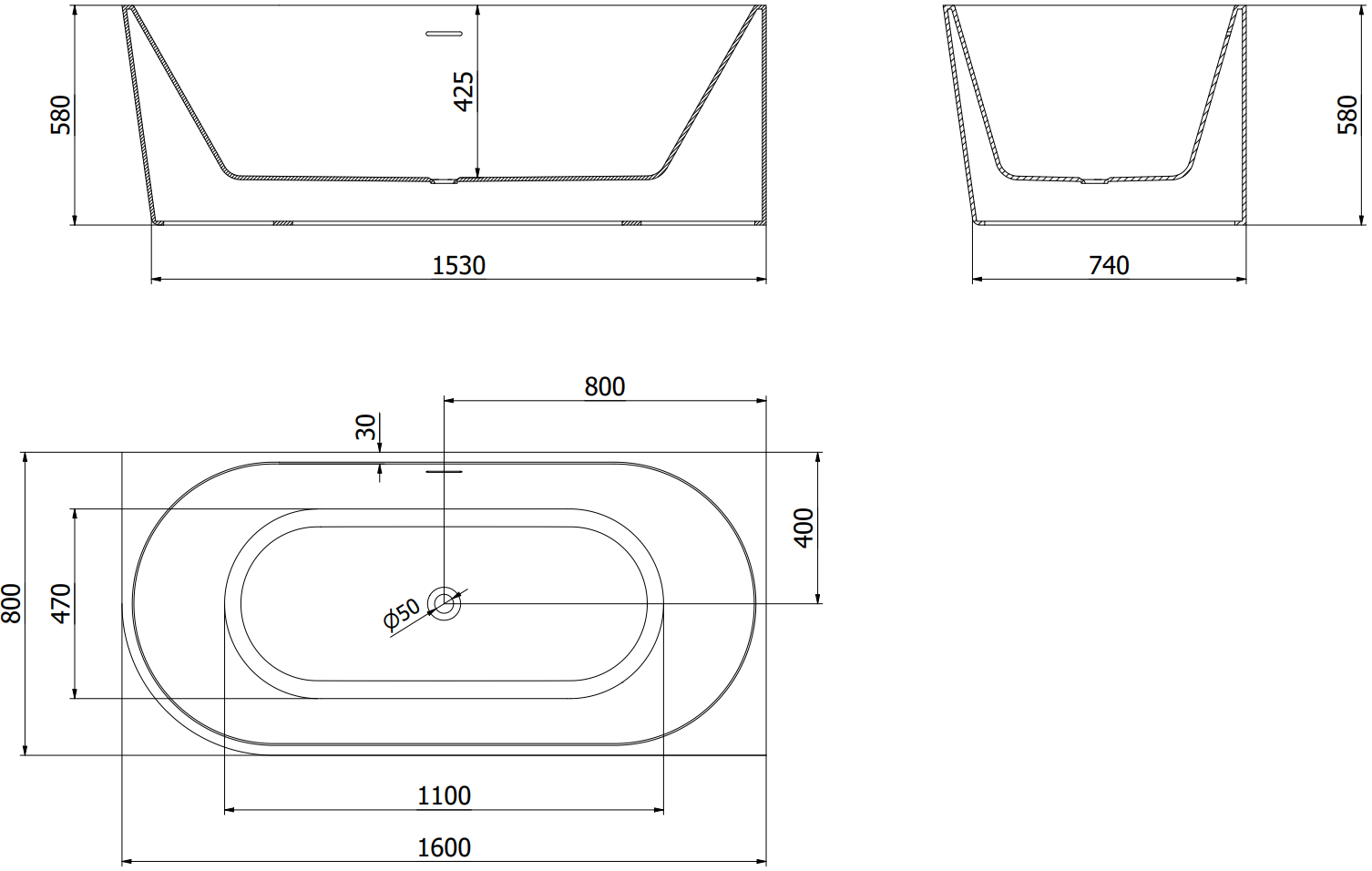 The overflow opening is referred to as the "safety opening". It allows excess water to escape, protecting the bathroom from flooding. This is a safe and practical solution that lets you enjoy a bath without worrying about the water level rising.
