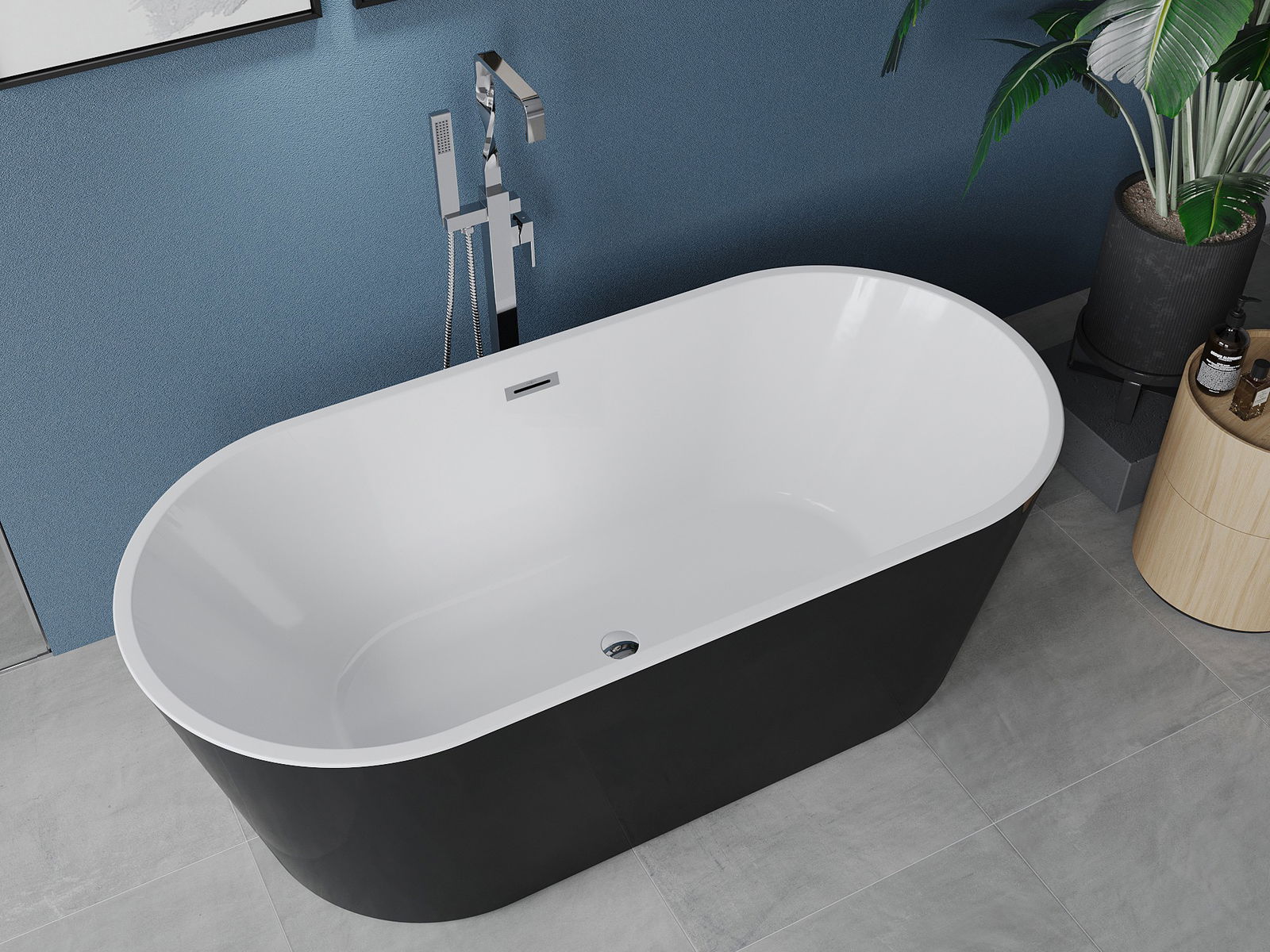 Mexen Luna freestanding bathtub 140 x 75 cm, white/black, chrome overflow - 52031407575-01