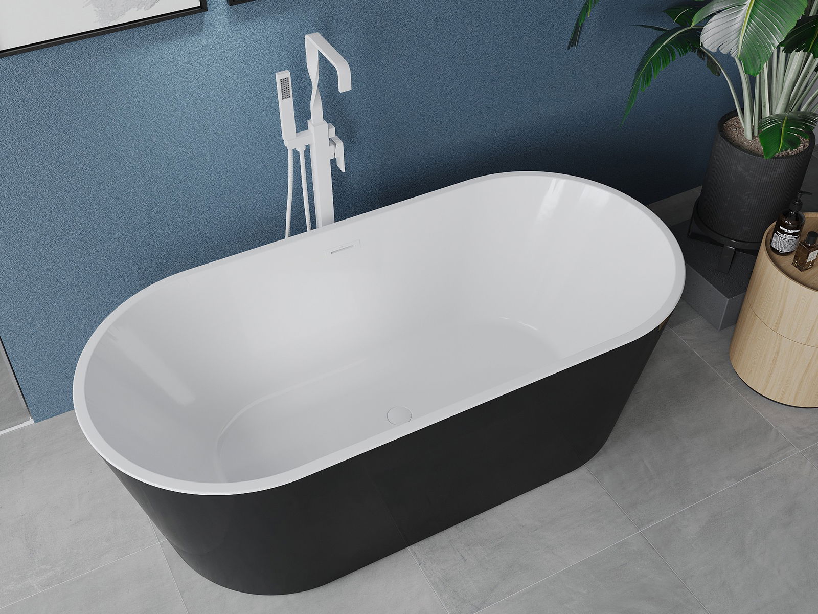 Mexen Luna freestanding bathtub 140 x 75 cm, white/black, white overflow - 52031407575-20