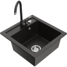 Mexen Vito 1-bowl granite sink with Telma kitchen tap, black/silver metallic - 6503-73-670200-70