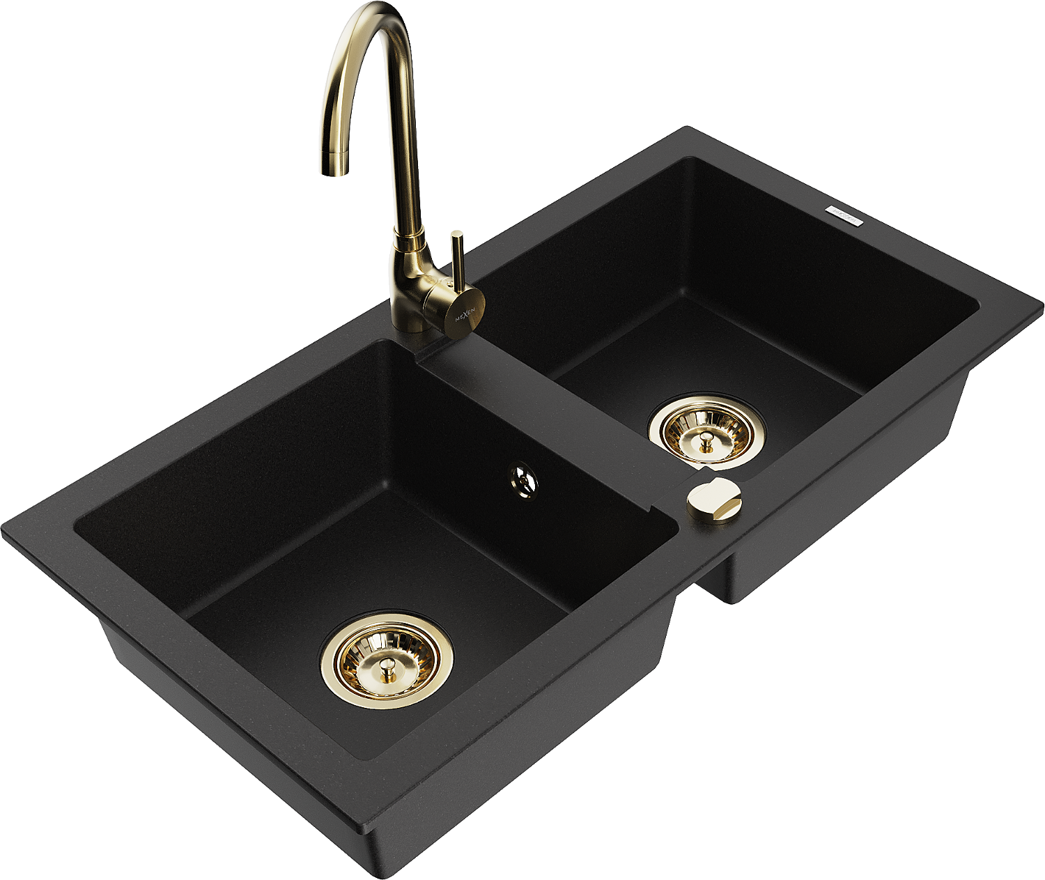 Mexen Mario granite sink 2-bowl with Telma kitchen tap, black - 6504-77-670200-50
