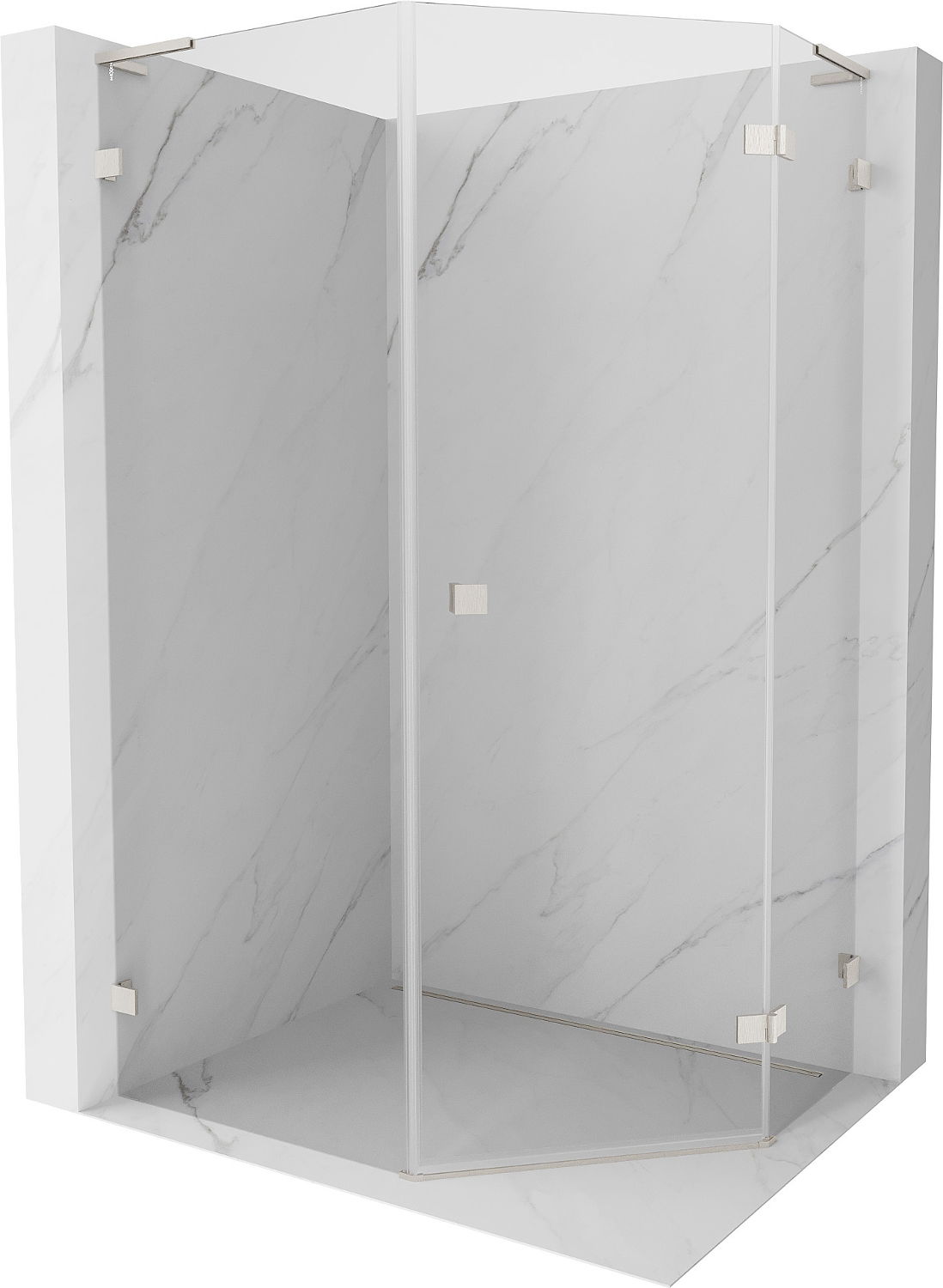 Mexen Lunar L pentagonal shower enclosure, right hinged 90x100 cm, transparent, brushed nickel - 831L-090P-100L-97-00-P