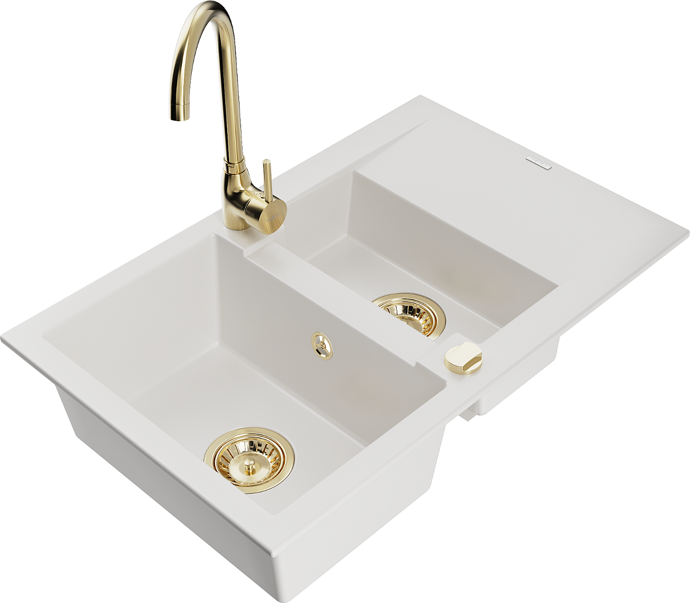 Mexen Gaspar granite sink 1.5-bowl with drainer and Telma kitchen tap, white - 6507-20-670200-50