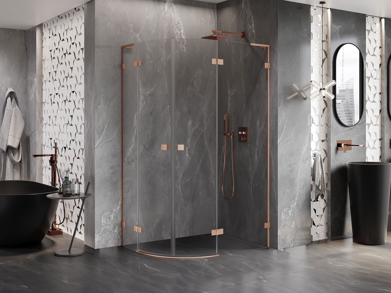 Mexen Lunar L semi-circular right-hinged shower cabin 80 x 70 cm, transparent, brushed copper - 833L-080P-070L-65-00