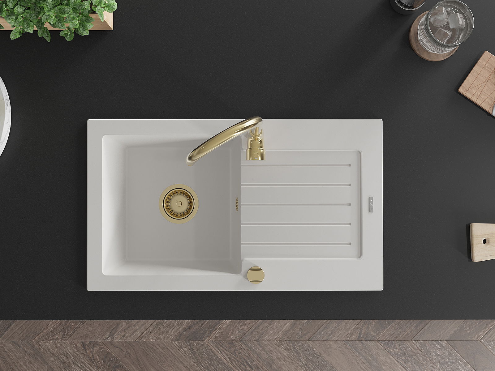 Choosing a sink with a draining board is a practical solution that allows you to set aside washed dishes or vegetables and fruits. The draining board makes daily cooking easier and helps maintain order in the kitchen.