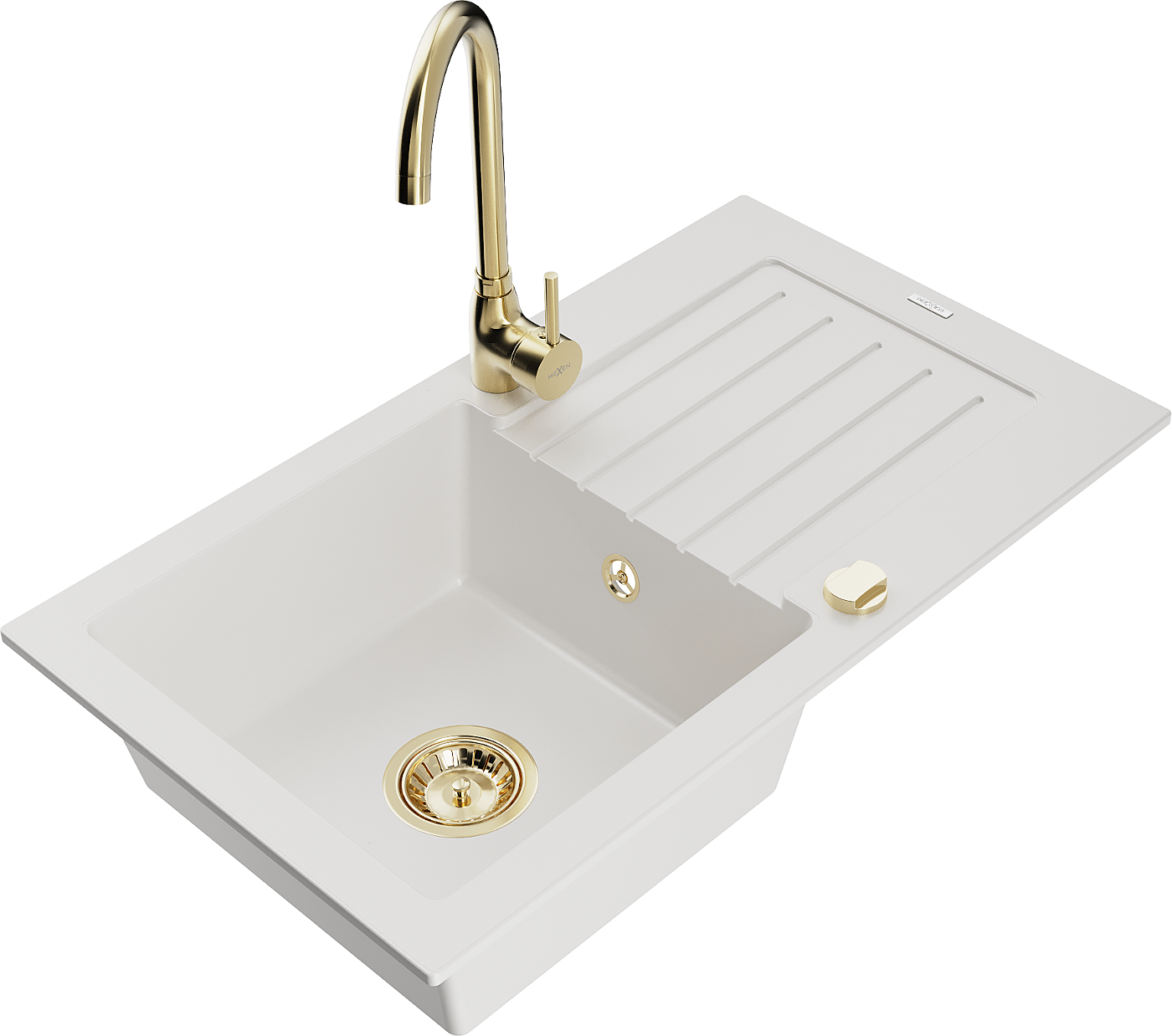 Mexen Pablo 1-bowl granite sink with drainer and Telma kitchen tap, white - 6510-20-670200-50