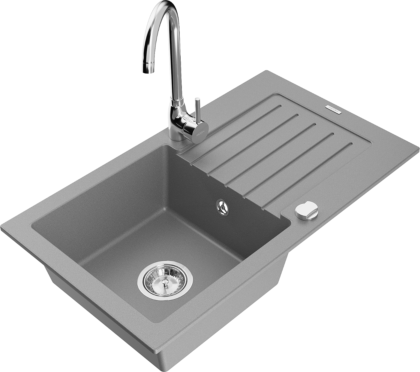 Mexen Pablo granite kitchen sink 1-bowl with drainer and Telma kitchen tap, grey - 6510-71-670200-00
