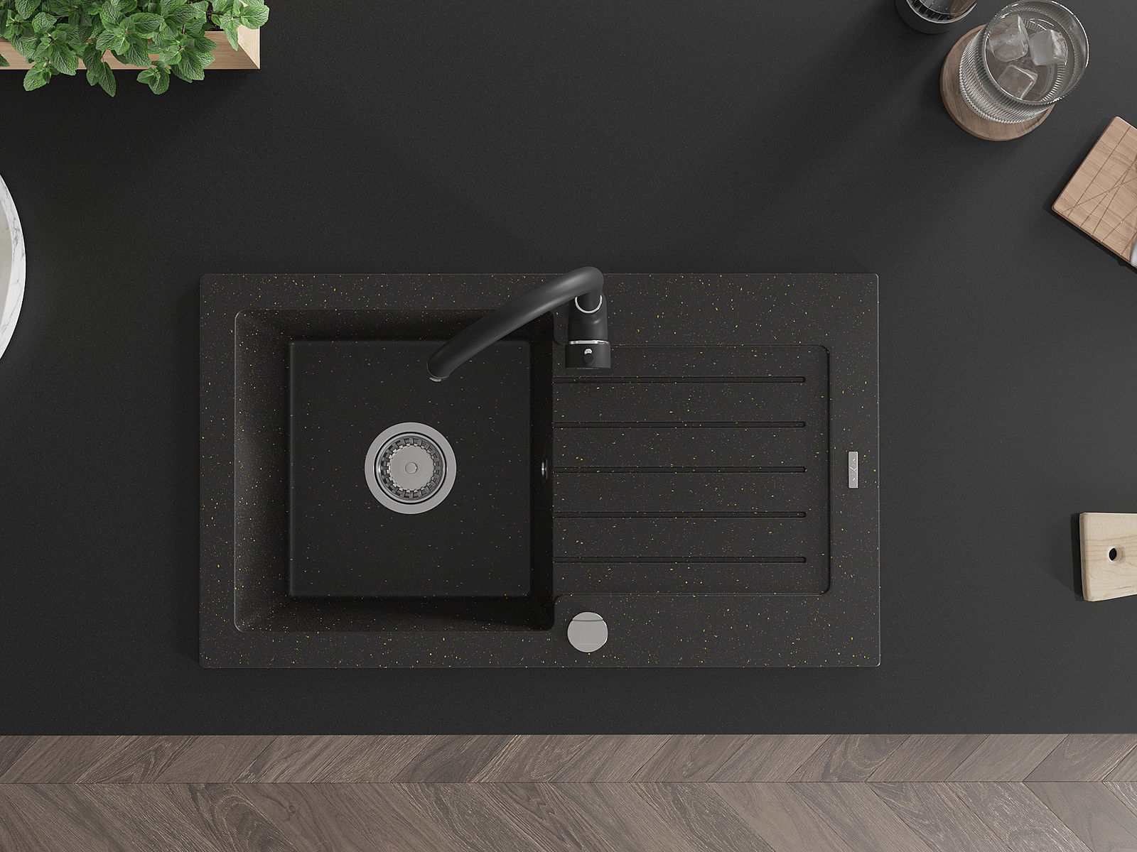 The sink is made from high-quality granite. It serves as an elegant and, above all, practical addition to any kitchen, regardless of its style. The high quality and durability of granite ensure many years of use.