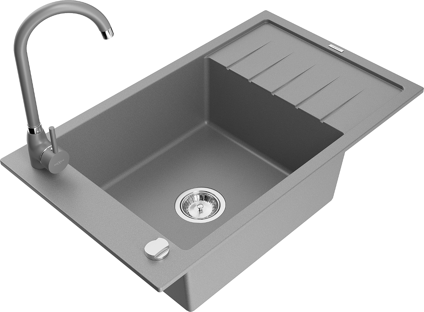Mexen Elias 1-bowl granite sink with drainer and Telma kitchen tap, grey - 6511-71-670200-71